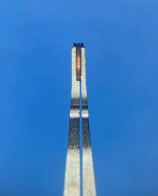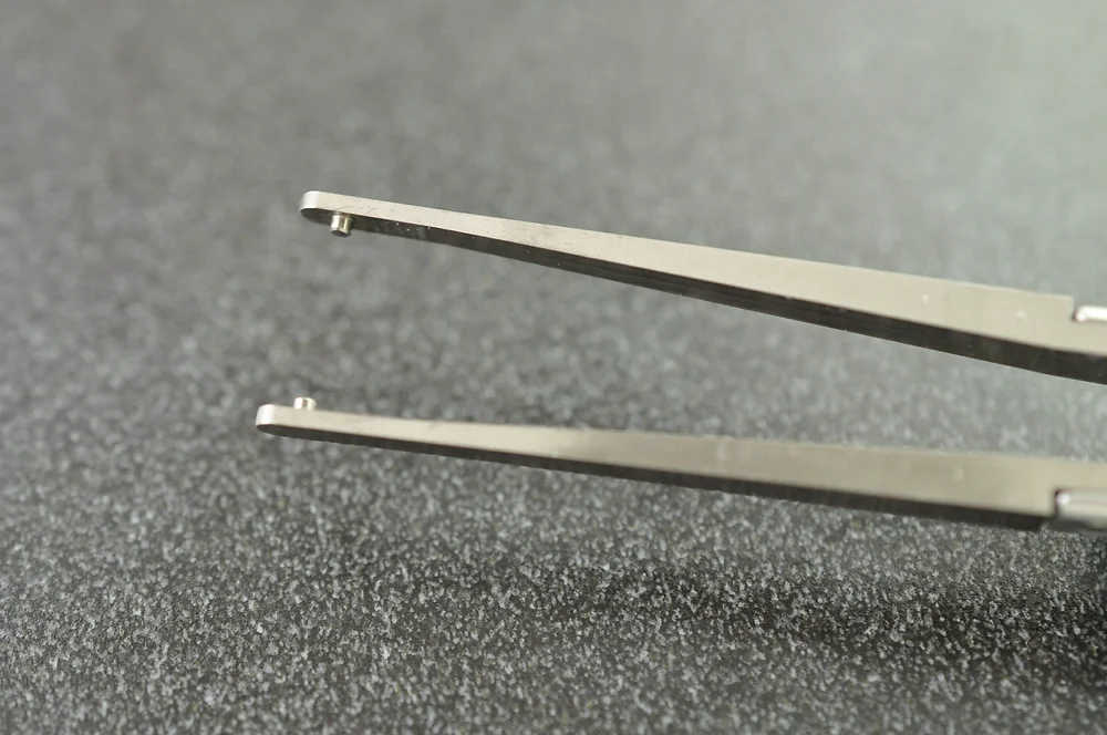 クリッピングツールは、ピンセットでツールを押すことでCクリップを排出します。このコンパクト設計により、ツールは液体窒素中で完全に冷却され、周囲の霜の影響を受けずに長時間保持できます。クリッピング前にツールをラックに置き、冷却後には任意のピンセットで簡単に操作できます。より直線的にクリッピングが可能で、Cクリップの正確な挿入を実現します。