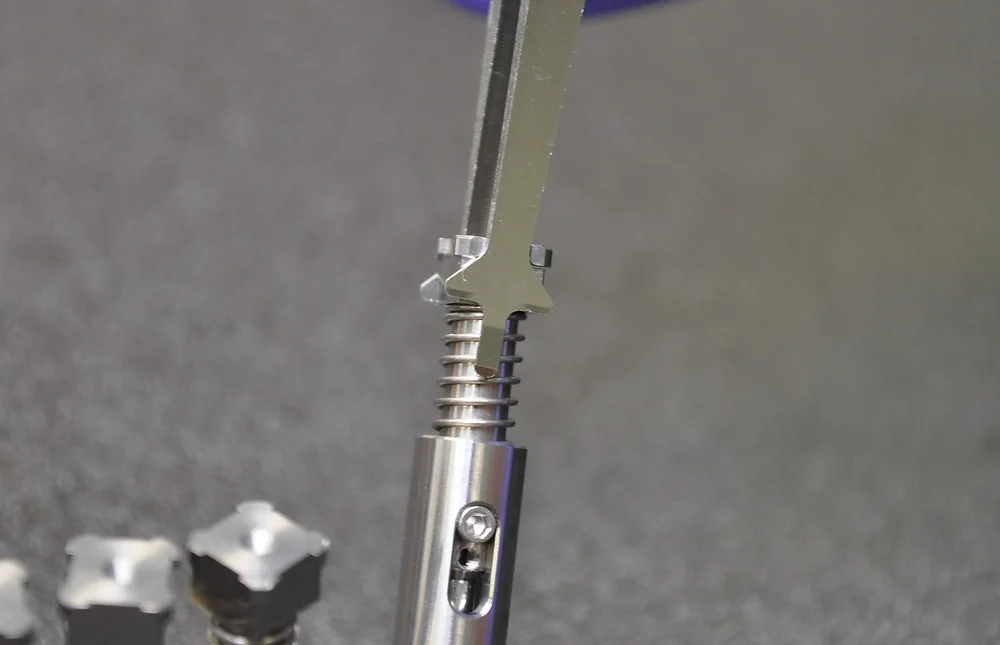 Cクリップボトミングツールは、クリッピング前にクリッピングツールのバレル先端にCクリップを「底入れ」する作業を容易かつ効率的にします。ツールのバレルにCクリップを押し込んだ後、バレルの先端をテーブルトップやピンセットに押し付ける代わりに、バレルをボトミングツールに置き、プランジャーを押してCクリップを底入れします。このツールはCクリップの誤底入れを大幅に減少させ、Cクリップがツールから飛び出すのを防ぎます。